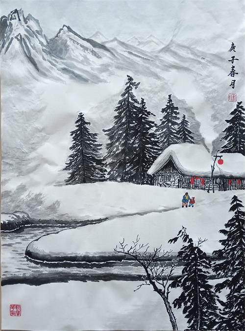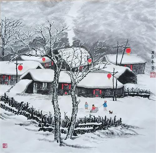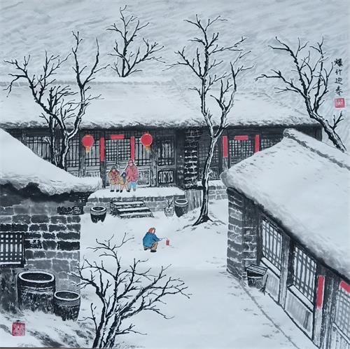 畫家靳寶華抗擊疫情雪景畫展作品