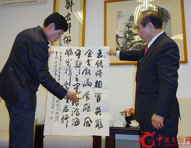 中國文物網(wǎng)訊 2014年12月5日,錦繡兩岸——中國書畫家盛懷杰臺灣公益書畫展在臺灣舉辦,以促進兩岸書畫藝術交流為核心,中國書畫藝術研究會主席、華夏東方杰書畫院院長盛懷杰攜上百幅個人書畫珍品在臺進行公益拍賣及贈畫活動。據(jù)悉,在展覽舉辦期間盛懷杰還與臺灣師范大學藝術系教授李振明,臺灣師范大學藝術系主任教授程代勒,東海大學美術系教授吳超然,萬能科技大學教授袁金塔,臺灣師范大學教授江明賢,著名書畫家李奇茂等幾十位專家、學者、教授,就“中國畫的傳承與創(chuàng)新”兩岸文化學術交流的歷史、現(xiàn)狀和前景,以及兩岸同根同源,中國傳統(tǒng)文化藝術如何走入世界前列的大好前景進行了討論和交流。入會專家一致認為未來世界的文化藝術應該以中華文化藝術為主流。