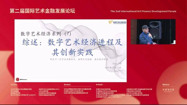 2022年12月25日,由北京外國語大學合肥國際學院、李可染畫院、西安美術學院、首爾科學綜合大學院大學、法國藝術文化管理學院、山東工商學院、全聯民間文物藝術品商會、中糧長城酒業有限公司聯合主辦;北外合肥國際學院中國藝術金融研究院、北京南山悠然文化有限公司、北京華夏思想者品牌管理有限公司聯合承辦;中國藝術經濟研究院、中央財經大學文化與傳媒學院、中國藝術財富高等研究院、沉浸式交互動漫文化和旅游部重點實驗室、元宇宙數字資產(NFT)研究發展中心、全聯民間文物藝術品商會數字經濟部、中糧長城文化研究院、北京市文化娛樂法學會藝術品市場法律事務專業委員會學術支持,中糧長城葡萄酒贊助支持的“第二屆國際藝術金融發展論壇”在李可染畫院學術報告廳以及線上會場同步成功舉辦。
