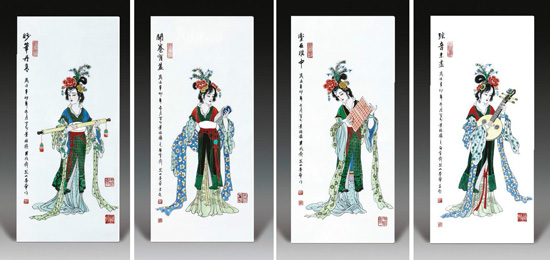 此次展覽將展出中國工藝美術大師戴榮華古彩力作《四季美人圖》瓷板一套。該作品以中國古代四大美女為題材,從構思到作品問世歷經兩年時間,作品中女子環姿艷逸、儀靜體閑,如新月生暈,如花樹堆雪,嬌柔婉轉之際,美艷不可方物;運用“古彩”制作工藝,使得整體色彩鮮明透徹,明凈晶瑩,充分展現了當今藝術陶瓷的最高創作水平。戴老師同類型瓷板在12年保利秋拍中更是拍出了1150萬元的高價。