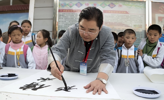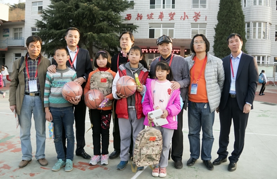 活動期間,活動組委會不僅組織知名書畫家一行實(shí)地參觀了西柏坡紀(jì)念館、七屆二中全會會址等中共中央舊址等紅色景點(diǎn),還來到西柏坡希望小學(xué)開展了特色文化援建活動,為學(xué)校老師和學(xué)生書寫校風(fēng)、校訓(xùn)等,還為學(xué)校捐贈了籃球、書包、文具盒、鉛筆、橡皮等學(xué)習(xí)和體育用品。老師和同學(xué)們被這種獨(dú)特而新奇的援建方式所吸引,并與書畫家們合影留念。