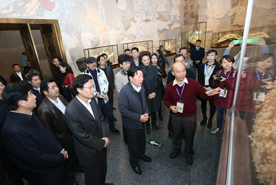 (左至右)廣東省委常委、宣傳部長庹震,廣東省文聯黨組書記程揚,中國民協分黨組書記羅楊,全國政協原副主席、中國文聯主席孫家正,中國文聯黨組書記趙實,廣東省委宣傳部副部長顧作義等參觀展覽