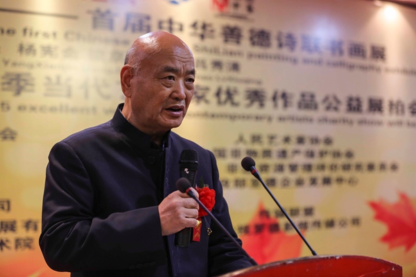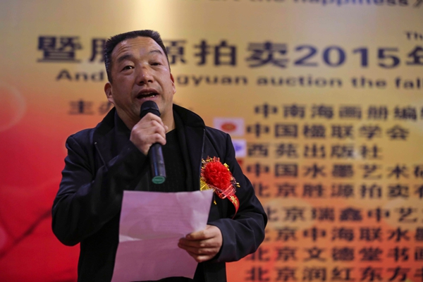 展拍會開幕式上故宮博物院研究員張淑芬,中國水墨藝術研究院院長楊憲金,北京勝源拍賣公司董事長沈懋先后致辭。中國文聯國內聯絡部綜合處處長、中國楹聯學會副會長李培雋,中國楹聯學會原名譽會長常江,民政部至德企業發展中心常務副秘書長季媛,北京服裝教授工藝美術系教授谷守山,中國毛澤東詩詞研究會副會長陶國斌,中國毛澤東詩詞研究會書法藝術研究分會副會長孫洪濤,中國工筆畫學會辦公室副主任孫志剛,山東臨沂美協主席張濤,中國泰山書畫院名譽院長郭洪義,國家檔案出版社《繪畫年鑒》編委會理事鄭東偉,翰尊藝術創作室佛神造像畫家王翰尊,原中央警衛局正師職干部梁京洋等嘉賓以及藝術界,收藏界,商界,媒體界等500余人參加了展拍會。