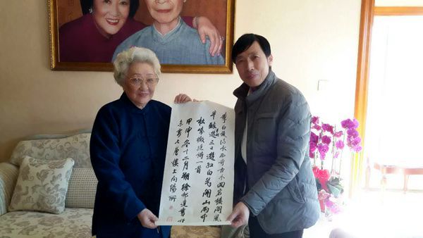 2015年12月14日下午,著名攝影家、光影平面油畫創始人,中華光影平面油畫藝術學會于江會長,中華光影平面油畫藝術學會副會長兼秘書長黃中一行專程拜訪著名書畫家、鑒定家、藝術史界的學術泰斗徐邦達先生的夫人滕芳女士,于江院長向滕芳女士介紹了中華光影平面油畫藝術的生發境況與發展態勢,并贈送了他親手創作的光影平面油畫藝術《滕芳女士肖像》!滕芳前輩對光影平面油畫藝術給予了充分地評價與贊賞,為鼓勵中華光影平面油畫藝術,滕芳女士慷慨回贈給于江院長一幅徐邦達先生生前書寫的珍貴墨寶!滕芳女士語重心長地說道為:這門藝術很了不起,一定要把這門既有本民族特色又具世界風尚的藝術流派推廣到國際藝術舞臺上,多宣傳中國的優秀文化,展現中國的精神風貌!