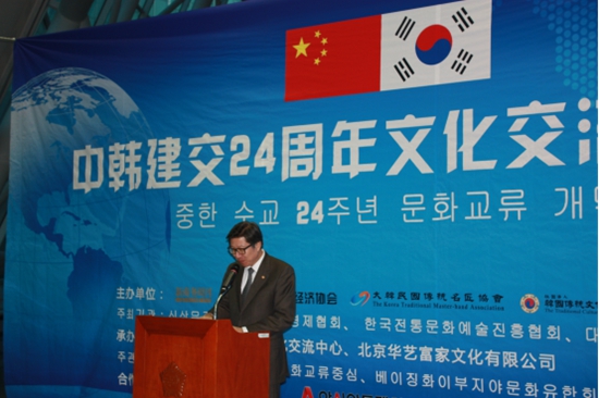 2016年1月12日,由韓中地域經濟協會、《新商務周刊》雜志社、大韓民國傳統名匠協會、韓國傳統文化協會主辦;北京浩瀚英華國際文化交流中心、北京華藝富家文化中心承辦的“中韓建交24周年文化交流活動”在韓國國會議事廳隆重開幕。