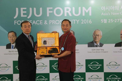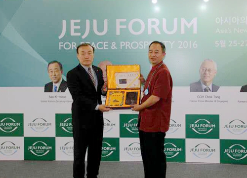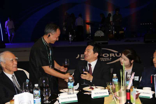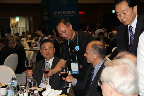 制硯大師王安平與出席濟州論壇的國際政要親切交流