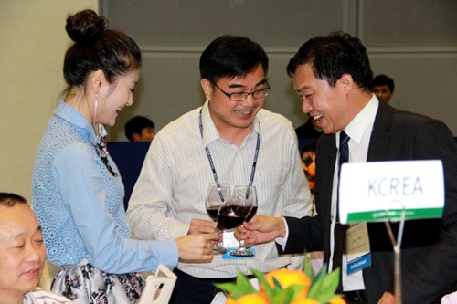 韓國國會議員在中日韓論壇上親切接見趙秋萍