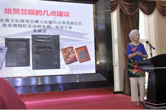 中華炎黃文化研究會(huì)硯文化聯(lián)合會(huì)常務(wù)副會(huì)長,首席專家,故宮博物院研究院張淑芬女士,主旨發(fā)言《給賀蘭硯的幾點(diǎn)建議》