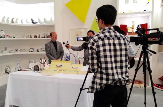 由文化部、北京市政府主辦的第三屆“中國藝術品產業博覽會”于九月二十九日至十月五日,在北京通州上上國際美術館成功舉辦。書畫篆刻瓷藝大家、兒童美術教育家華奎應邀參加了本屆博覽會主題場館“大國工匠 . 陶瓷藝術”展區的展覽,共展華奎先生的精品力作六十多件。華奎先生的瓷藝作品風格獨特、品味高雅、形式多樣。在歷時七天的展覽中華奎先生精湛的技藝受到廣泛的認同,眾多媒體對其進行了采訪報道。其中他創作的價值三千萬的巨型(3.6米X1.6米)高溫釉下五彩瓷板畫《萬紫千紅總是春》色彩明麗、大氣磅礴、迎來了成千上萬的觀眾駐足觀摩品評,留影紀念,成為本屆博覽會的焦點、亮點。