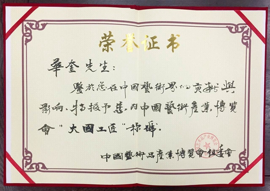 今年五月華奎先生曾以瓷藝大家的身份應邀赴韓國參加了中韓非遺高峰論壇暨逸品神工精品展。他的陶瓷雕塑作品《勤勞智慧中國娃》由韓國國會永久收藏。同時有多件作品榮獲“逸品神工”獎。并以《中國陶瓷文化藝術的回顧與展望》為題作為學術交流發言。近年來,華奎先生在景德鎮對陶瓷藝術進行了如癡如醉的探索創作,加深了對我國陶瓷文化藝術的認識和情感。前段時間華奎先生在重慶開州和張家口武家莊同一些熱心陶瓷文化非物質文化遺產的社會賢達一起,對當地瀕臨消亡和已經廢棄的窯址進行了實地考察。提出了一系列搶救方案。計劃首先在這兩個地方建立陶瓷文化藝術墻,陶瓷文化博物館和陶瓷藝術體驗館。決心把我國的陶瓷文化藝術進一步發揚光大。同時擬定了一系列的研究創作計劃,準備創作出更多更美的陶瓷藝術精品奉獻社會。