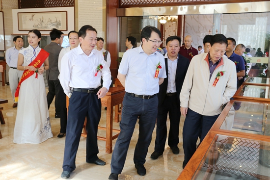 玉山縣雕刻協會會長廖芝軍陪同全國政協委員、中華炎黃文化研究會名譽副會長、中華炎黃文化研究會硯文化聯合會名譽會長劉紅軍,玉山縣委副書記、縣長徐樹斌參觀羅紋硯