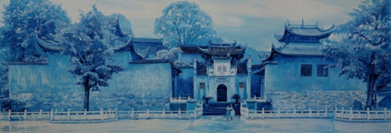 深沉鮮活的中國青花瓷文化是最能代表中國傳統文化的意象之一。作者以田野式調查方式與非遺文化視覺深入湘西,用傳統青花意象觀照今日時代巨變的湘西,表現湘西風光,記錄湘西人文,傳承湘西非遺成果。一方水土養一方人,湘西文化在幾千年的發展歷程中,大量的非物質文化遺產符號和當地自然文化遺產緊密相聯,在人們的生活方式中和諧發展,逐漸形成了獨特的湘西文化遺產譜系。在人們審美多元化的今天來欣賞青花非遺油畫作品的確給人一種視覺和精神上的滿足感,其劉家樣個性風格的藝術手法以其精準的造型、高雅的色彩、個性化的筆觸、精湛的制作技藝、奇特的創意以及全新的觀念,描繪出了湘西如詩如畫的古村落、古剎、風雨橋、民居,街市;以及畫面里出現的人物形象,織藝印染,金銀頭飾都能和諧完美地傳達出一種古韻今輝的時代表情。其立意之高遠,內容之豐富,歷史之久遠,符號之多樣,技法之全面為中國畫壇之首創。