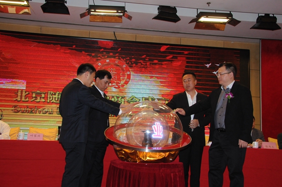 省駐京辦副主任何勇、常務副市長蔣星華、北京湖北商會常務副會長余兵國、北京隨州企業商會會長陸成國啟動商會成立
