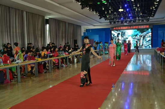 2017年5月2日,豐臺區(qū)體育舞蹈協(xié)會模特分會成立暨展演活動在金球國際隆重舉行,來自區(qū)域內(nèi)的近200名模特精英,身著以旗袍等傳統(tǒng)民族服裝,走在紅地毯上真是美輪美奐,彰顯大藝術(shù)時代優(yōu)雅女性風范。