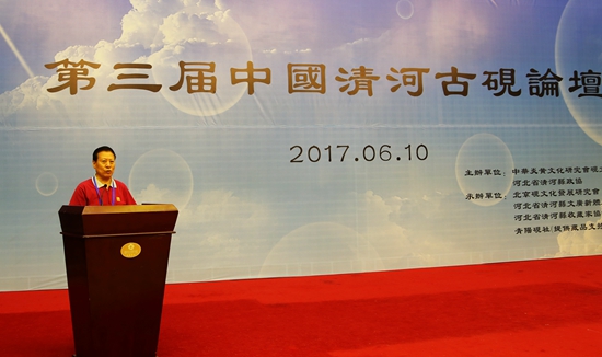 為貫徹落實黨中央和習總書記關于弘揚中華優秀傳統文化的指示要求,2017年6月10日至11日,由中華炎黃文化研究會硯文化聯合會、河北省清河縣政協共同舉辦的“第三屆中國清河古硯論壇”在河北省清河縣舉行。中華炎黃文化研究會硯文化聯合會名譽會長劉紅軍,名譽副會長許世寬,常務副會長張國興、劉克唐、金彤,副會長火來勝、黃海濤、張得一,專委會委員華慈祥、陳國源;清河縣人大常委會主任任山景、縣政協主席牛洪奎、常務副縣長樊英俊、宣傳部長解恭朝、縣政協原主席馮明躍、縣文廣新體局局長朱彥興、清河縣收藏家協會潘印華等,以及來自全國硯界的收藏家、愛好者約160余人參加。