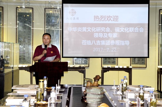 7月22日上午,中華炎黃文化研究會(huì)常務(wù)副會(huì)長張希清,硯文化聯(lián)合會(huì)名譽(yù)會(huì)長劉紅軍、名譽(yù)副會(huì)長張維業(yè),聯(lián)合會(huì)顧問楊斌、執(zhí)行會(huì)長唐本高,中國工藝美術(shù)大師、常務(wù)副會(huì)長劉克唐,中國工藝美術(shù)大師、副會(huì)長石飚,副會(huì)長馮明躍,榮譽(yù)會(huì)長王習(xí)則、榮譽(yù)副會(huì)長孫舉德,中國工藝美術(shù)大師、專委會(huì)顧問張慶明、王祖?zhèn)ァ⒉芗佑拢?lián)合會(huì)專委會(huì)委員華慈祥、陳國源等一行30余人赴吉林省八吉工美藝術(shù)集團(tuán)進(jìn)行了參觀考察,觀看了松花石藝術(shù)品陳列展示并召開交流座談會(huì)。吉林省八吉工藝美術(shù)集團(tuán)是國內(nèi)唯一一家專注于松花石產(chǎn)業(yè)投資、松花石硯、精品奇石、松花石旅游產(chǎn)品及松花石珠寶用品開發(fā)的大型集團(tuán)公司,資產(chǎn)近百億元。八吉集團(tuán)已陸續(xù)收購松花石原礦和精品奇石20余萬件,原創(chuàng)松花石硯大師作品近萬方,為松花石藝術(shù)文化產(chǎn)業(yè)中的龍頭企業(yè)。