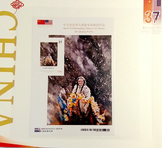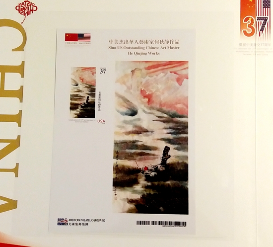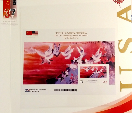 著名國畫家何秋靜作品入選中美建交37周年紀念郵冊