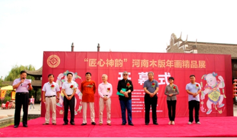 9月24日上午9時,《匠心神韻》河南木版年畫精品展開幕式準時在古色古香的木結構建筑環繞的年畫一條街舉辦。開幕式由中國非遺藝術設計研究院研究員、開封朱仙鎮木版年畫聯合社社長張繼中先生主持,開封市民協駐會副主席兼秘書長豐德永,朱仙鎮黨委書記郭峰,朱仙鎮萬同年畫研究院院長白小豹,中國非遺藝術設計研究院院長張錩先后發表了熱情洋溢的賀詞,中國非遺藝術設計研究院院長張錩,執行院長西沐為中國非遺藝術設計研究院年畫研究基地揭牌,開封市文聯主席、開封民協主席甘桂芬宣布《匠心神韻》河南木版年畫精品展開幕。