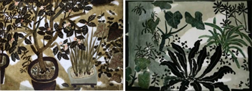 What is most striking about these new works is their overwhelming sense of black. Dong Shaw-Hwei’s use of black functions on many levels. It relates her oil painting to the legacy of Chinese ink painting, and in fact some of her arrangements can be related to Chinese flower painting compositions. Her black also conveys both dignity and gravity, and suggests mysterious shadows from another world.