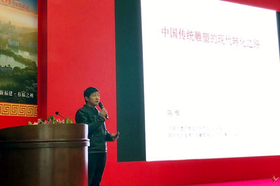中國非遺藝術設計研究院副院長,清華大學美院雕塑系副主任、副教授陳輝先生發言:中國傳統雕塑承載著幾千年積淀下來的民族精神和文化,觀察方式和工藝技巧,它的內涵和形式上是實用性與審美性的統一體。如何對傳統雕塑傳承和現代轉化,把對傳統材料的情感和傳統技藝的掌握,連接到時代的文化意識和創新意識之中是我們應該思考的問題。