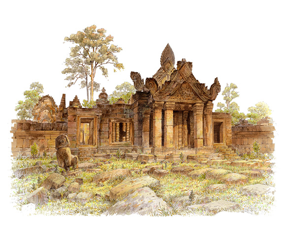從08年的尼泊爾開始,到吳哥窟、印度、緬甸,夏克梁的臺歷系列已成為大家手中一道獨特的古文明建筑風景。在這幾個系列作品中,他采用的勾線法也是受大衛·羅伯茨的影響。為了不使畫面感覺到太實,夏克梁采用邊緣隨意、中間寫實的勾勒法,烘云托月,既有力表現了主題,亦淡化了邊緣梭角,最后將線條和色彩完美融合,把這些孕育著古老文明的神秘之地表現得美妙絕倫。臺歷畫面所呈現的效果細致講究,影調柔和,場景極具震撼,這些精美畫作的誕生亦是對他日臻完善的馬克筆繪畫表現技法的最好褒獎。
