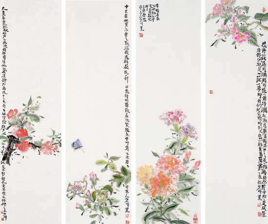 萬類皆是性靈.白巖峰筆下的花鳥和山水,不困囿于現(xiàn)實(shí)生活中瑣碎的細(xì)節(jié),緣起于他的靈魂里固有的連綿不絕的詩情畫意,藉花與山水傳情,即興抒發(fā),真切感人.畫面首先傳遞給人們的是氣勢(shì)和氣韻,氣骨和氣度.是一片爽風(fēng)西來云霧掃開天地憾,大江東去波濤洗凈古今愁的達(dá)觀心境。