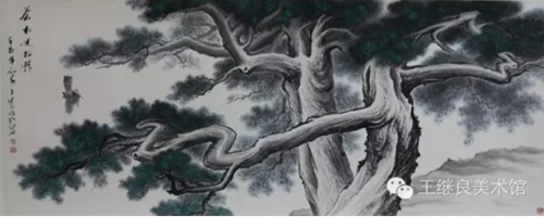 “歲寒終不改,勁節(jié)幸君知。”松樹青春常在、剛毅堅強、不畏艱難的品格是國人最為崇拜的。自古以來更為文人墨客所標榜,贊頌松樹的古詩及畫松高手,如松林立、不勝枚舉。只有從觀松、愛松、敬松、知松、寫松、畫松、悟松中體味大自然造設的天賦異稟,窮其萬千思緒不斷地把“松與我”共同打破,用水墨調和,再重新塑造一個松、一個我 ,方能達到從自然中來,到自然中去的暢快境界。賞析王繼良老師的松石畫作的時候,那種肅然起敬、氣場共鳴、還是天趣使然,讓人身不由己的陷入了此情是該賦予松,還是應賦予畫作的兩難境地。