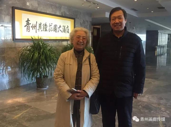 郎紹君夫婦書畫展將在曠遠(yuǎn)齋舉行。得知郎先生與夫人提前到達(dá),11月10日晚,在朋友馬游泳帶領(lǐng)下,去青州貝隆大酒店拜訪了郎紹君夫婦。敲門,郎夫人開門迎接。進(jìn)門,高貴大方,溫文爾雅的郎夫人非常熱情地招呼我們落座。郎先生正在休息,郎夫人進(jìn)屋輕輕地說:“有客人來了”。