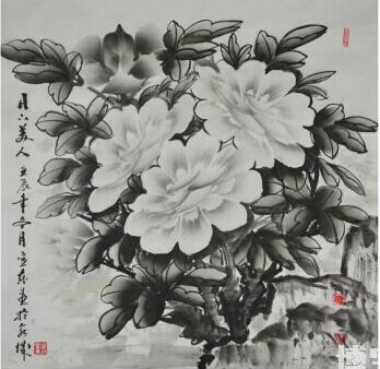 他畫牡丹富有創意,追求一種氣勢、一種神韻,使整幅畫線條圓潤挺拔,筆觸瀟灑流暢,獨具一種生趣盎然、空靈典麗、意韻飛揚的風格。他畫牡丹常常是有所寄托,寄寓對生活的感受,抒情達意,主題鮮明。他閱歷豐富,氣質涵養深厚,堅定而樂觀。所有的氣質透在畫里,花見其人,畫見其人。