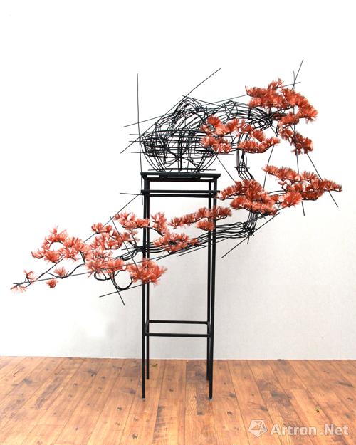雅昌藝術網:2014年是您藝術創作轉型的節點,正如您所說,開始摒棄架上雕塑,轉向對當代語系的介入,比如今年創作的《紅松》就是采用的是鋼筋、不銹鋼、銅組合而成的作品。說一下您對這一系列作品的創作想法吧?
