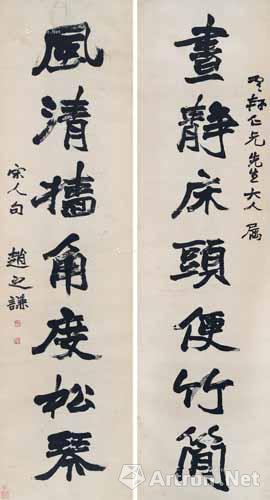 圖錄號(hào):0453 趙之謙 行書七言聯(lián) 立軸 水墨紙本