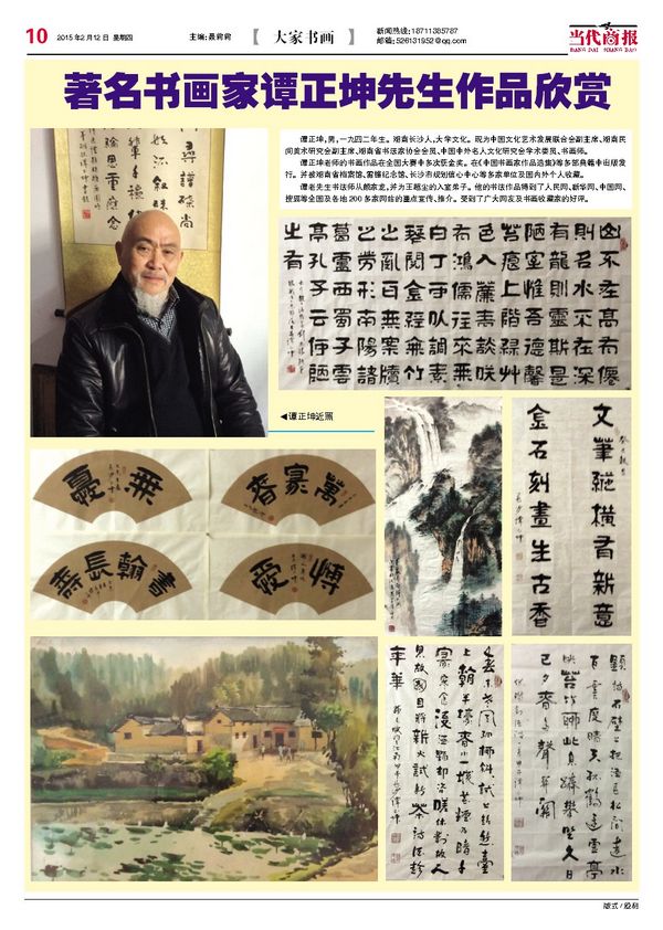 圖為2015年2月12日出版的《當代商報》刊發(fā)譚正坤老師的作品