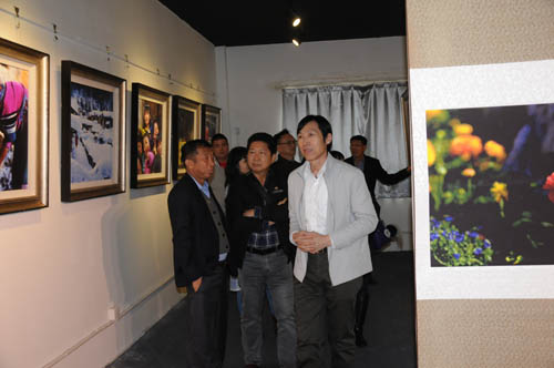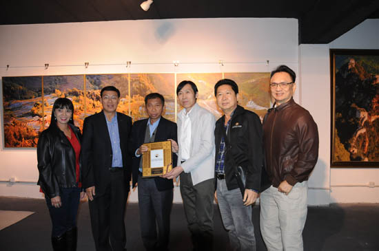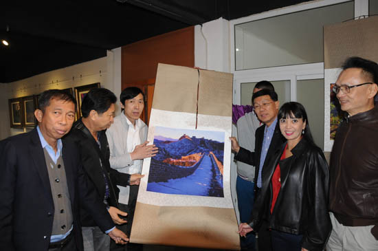 于江會長向泰國客人講解中華光影平面油畫