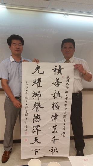 黃中為國(guó)際獅子會(huì)臺(tái)灣總監(jiān)黃義瀚先生撰寫(xiě)楹聯(lián)