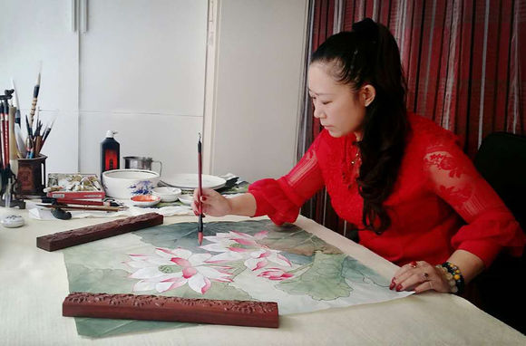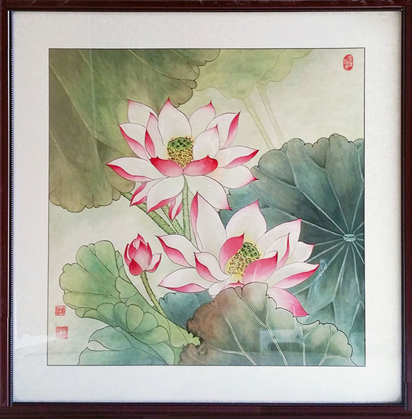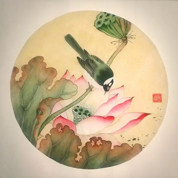 擅長工筆花鳥人物仕女,寫意牽牛花荷花獨具特點,篆字粗細均勻、結體勻稱、端莊秀麗。作品已經得到多位當代著名書畫家前輩的認可和贊揚,對作品也給與了高度肯定,著名詞作家溫喆吉先生看過作品后,題詩一首: