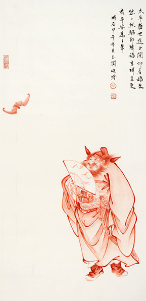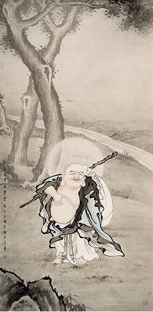 布袋和尚紙本淡彩尺寸-66×134-cm