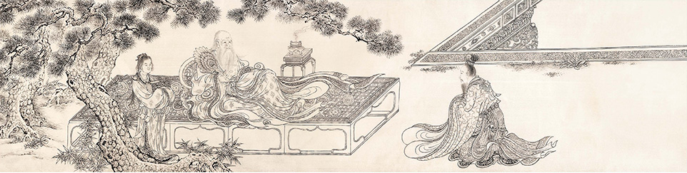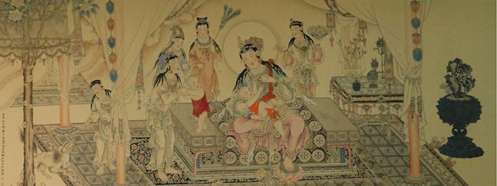 姨母育佛圖-絹本設色尺寸-180×54-cm