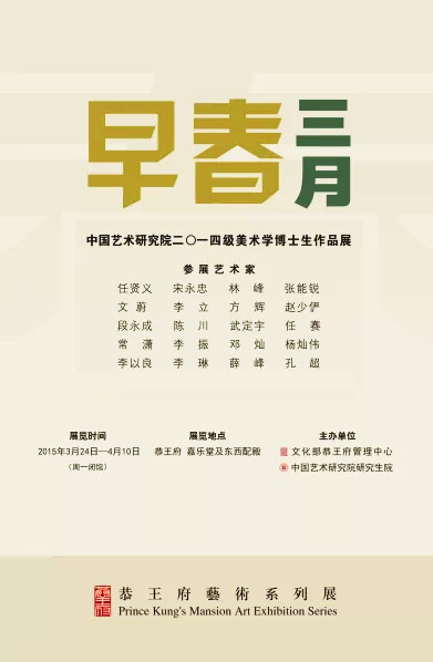 2015年3月24日至4月10日,經(jīng)過(guò)精心的前期準(zhǔn)備,由文化部恭王府管理中心與中國(guó)藝術(shù)研究院研究生院共同主辦的“早春三月——中國(guó)藝術(shù)研究院2014級(jí)博士研究生作品展”在恭王府舉行。
