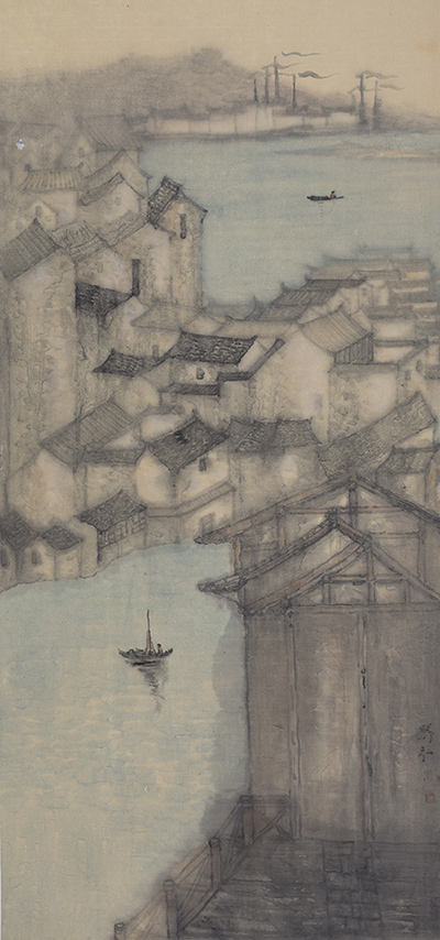 古鎮(zhèn)漁歌 136cm×68cm 2015年