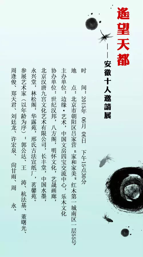 《遙望天都》首次京城展,十人,雖不能全景安徽,但能代表著我對安徽繪畫藝術界的了解,更主要代表了安徽藝術界的一個層面。也表達了我對藝術的深摯情感和對故鄉的真摯情懷。此次展覽,能使我們歡聚北京,歡聚樂木文化藝術空間。也圓了我多年來追求藝術的夢想。
